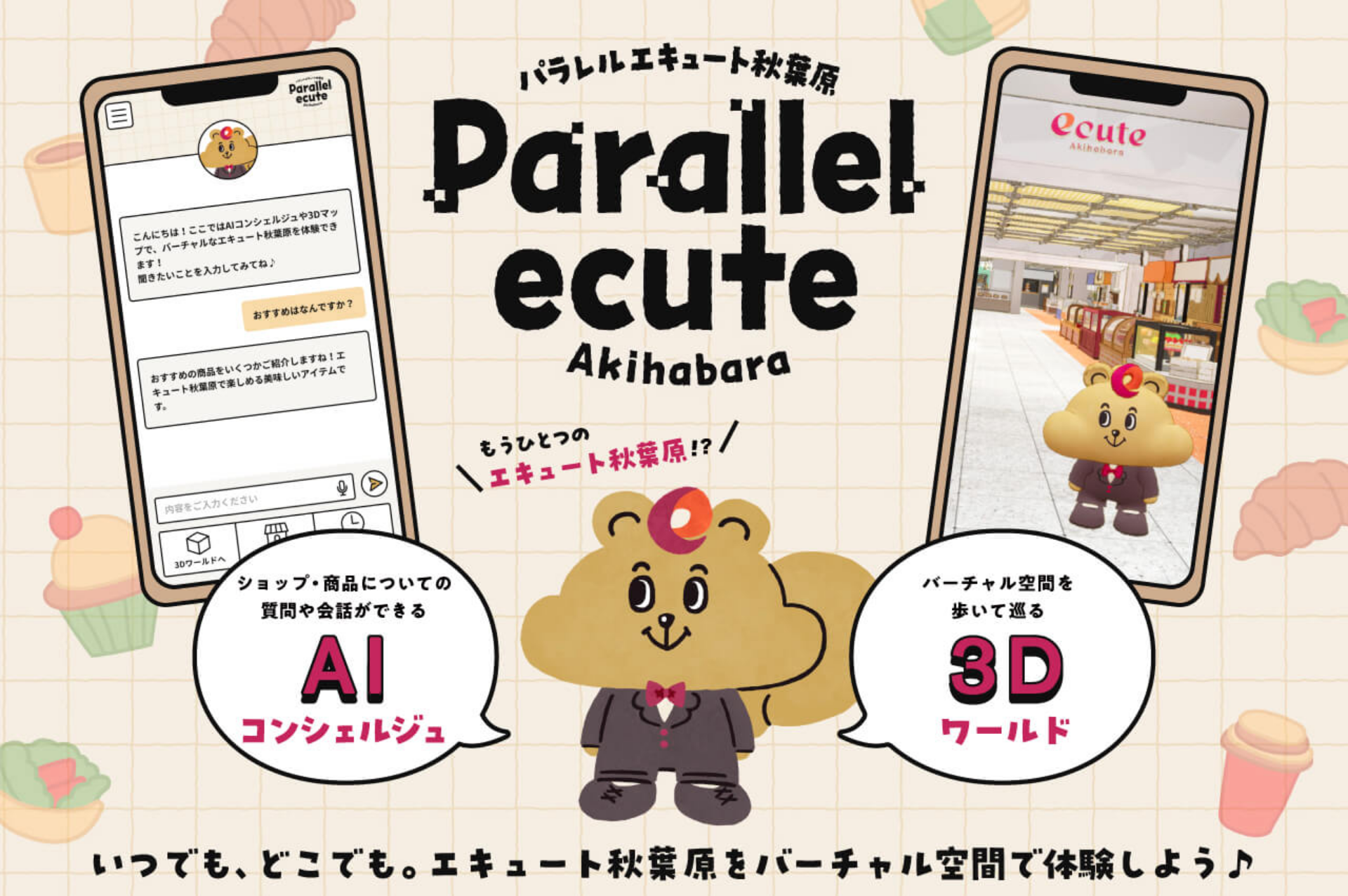 エキナカ商業施設「エキュート秋葉原」をテーマにした新たな顧客コミュニケーションツール「Parallel ecute -Akihabara-」。生成AIによる「双方向コミュニケーション」と、メタバース空間で施設を疑似体験できる「3Dワールド」を実装したこのサービスは、一体どのようにして生まれたのか?制作を担当したチームのみなさんに、その仕事の魅力を聞きました。